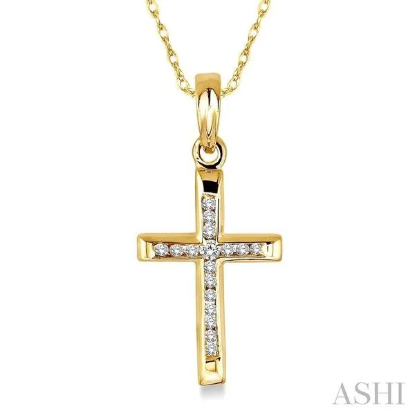 1/10 Ctw Single Cut Diamond Cross Pendant in 14K Yellow Gold with Chain Image 2 Adler's Diamonds Saint Louis, MO