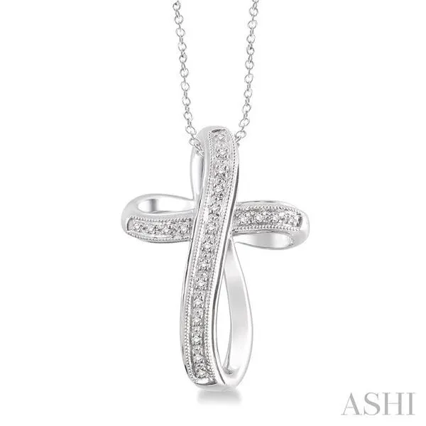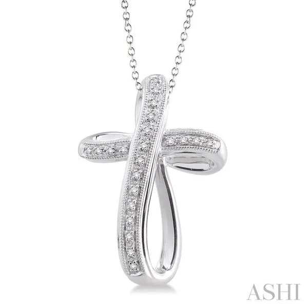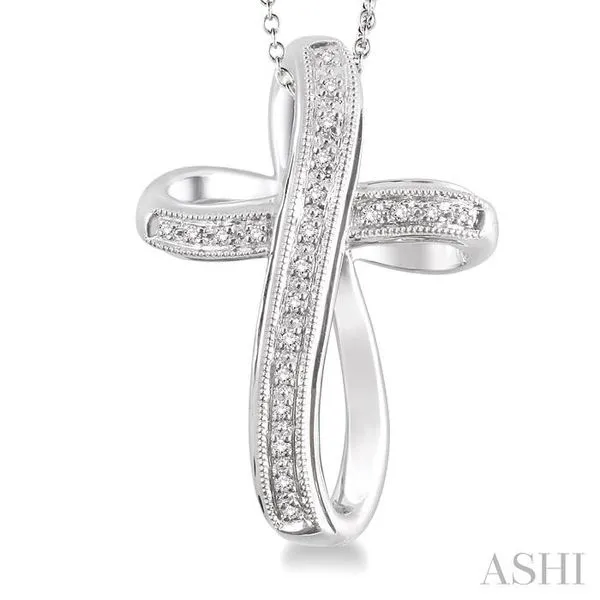 1/10 Ctw Single Cut Diamond Cross Pendant in Sterling Silver with Chain Image 2 Adler's Diamonds Saint Louis, MO