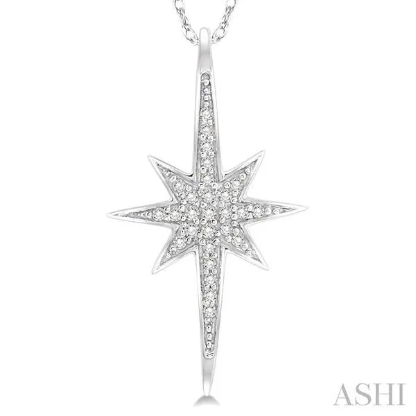 1/10 Ctw Star Charm Round Cut Diamond Pendant With Link Chain in 10K White Gold Image 3 Adler's Diamonds Saint Louis, MO