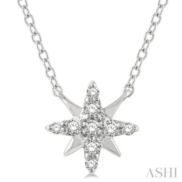 1/10 Ctw Star Round Cut Diamond Petite Fashion Pendant With Chain in 10K White Gold Image 2 Adler's Diamonds Saint Louis, MO