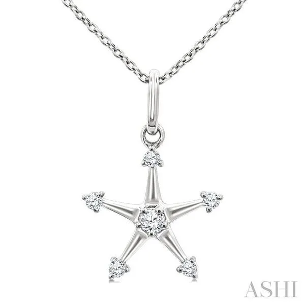 1/10 Ctw Star Round Cut Diamond Petite Fashion Pendant With Chain in 10K White Gold Image 3 Adler's Diamonds Saint Louis, MO