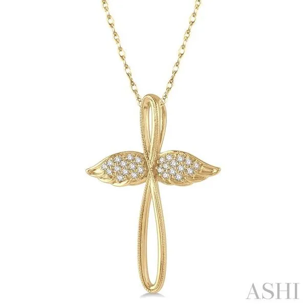 1/10 Ctw Twisted Cross Angel Wings Round Cut Diamond Pendant With Chain in 10K Yellow Gold Image 3 Adler's Diamonds Saint Louis, MO