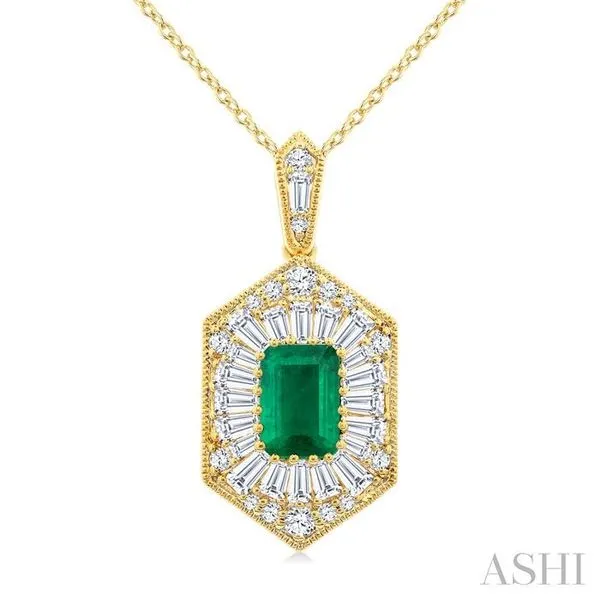 1/2 Ctw Art Deco Hexagon 6X4MM Emerald, Baguette and Round Cut Diamond Precious Pendant With Chain in 14K Yellow Gold Image 2 Adler's Diamonds Saint Louis, MO