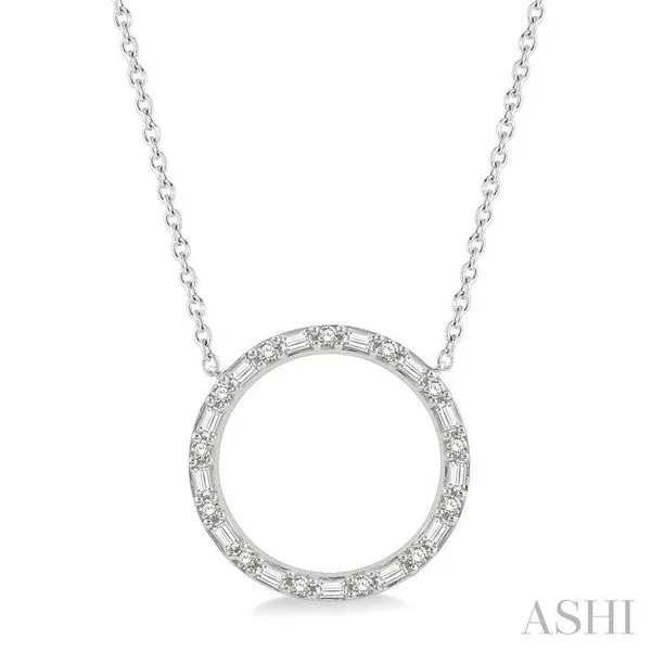 1/2 Ctw Circle Baguette and Round Cut Diamond Pendant With Chain in 14K White Gold Image 2 Adler's Diamonds Saint Louis, MO