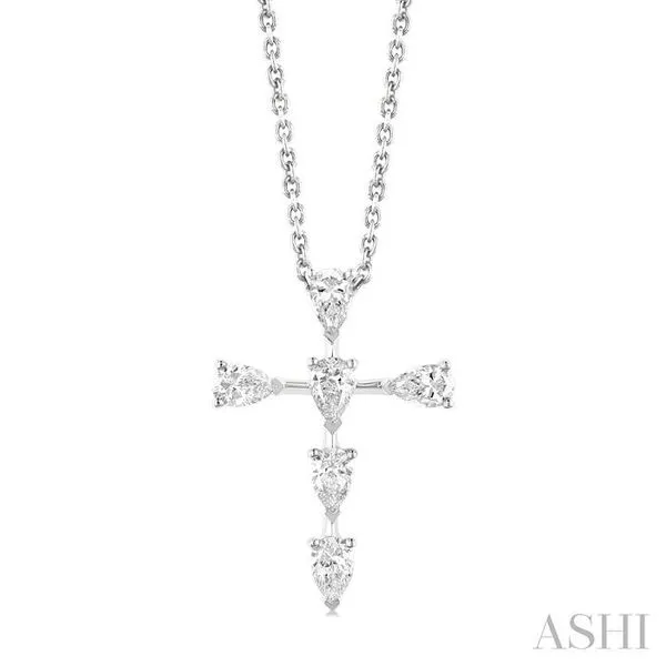 1/2 Ctw Cross 6-Stone Pear Cut Diamond Fashion Pendant With Chain in 14K White Gold Image 3 Adler's Diamonds Saint Louis, MO