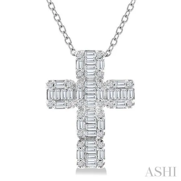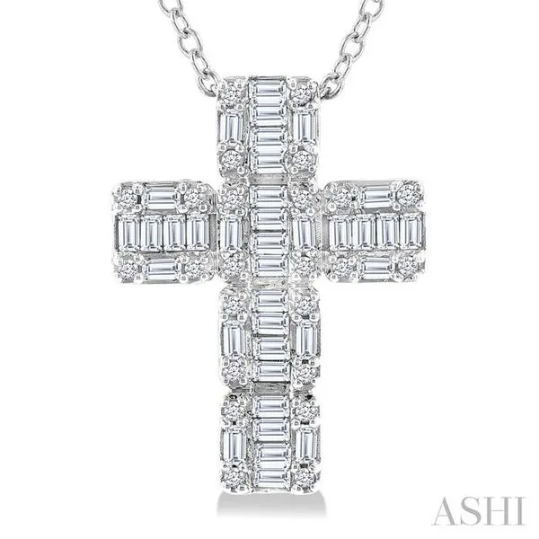 1/2 Ctw Fusion Baguette and Round Cut Diamond Cross Fashion Pendant With Chain in 14K White Gold Image 2 Adler's Diamonds Saint Louis, MO