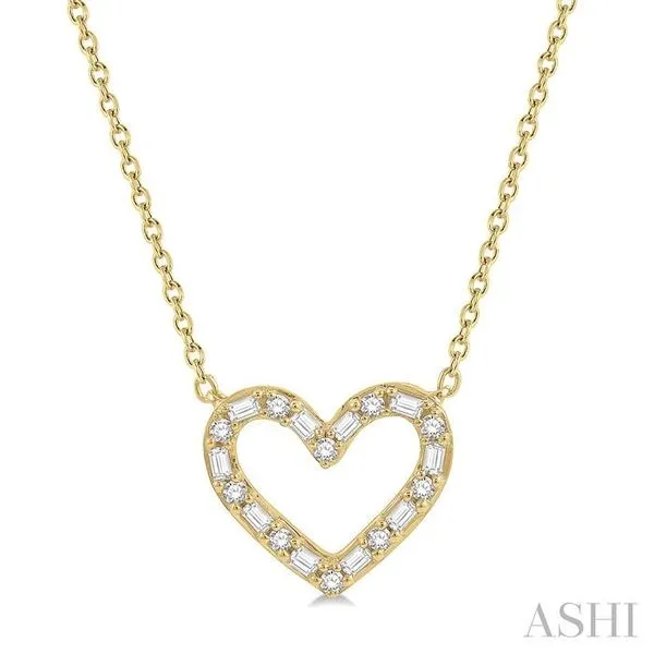 1/2 Ctw Heart Charm Baguette and Round Cut Diamond Pendant With Chain in 14K Yellow Gold Image 2 Adler's Diamonds Saint Louis, MO
