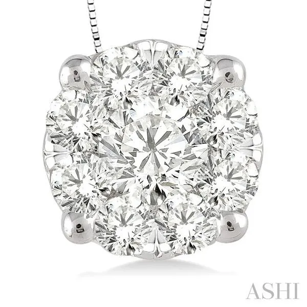 3. 1/2 Ctw Lovebright Round Cut Diamond Pendant in 14K White Gold with Chain
