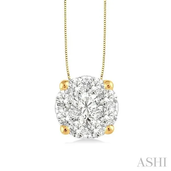 1/2 Ctw Lovebright Round Cut Diamond Pendant in 14K Yellow and White Gold with Chain Adler's Diamonds Saint Louis, MO
