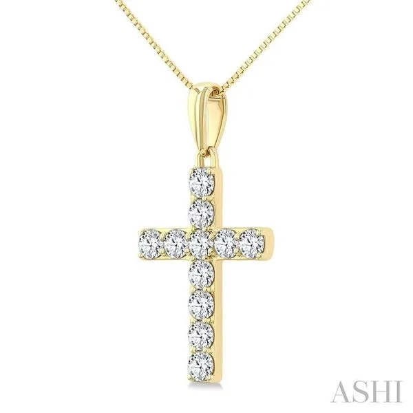 1/2 Ctw Roman Cross Round Cut Diamond Fashion Pendant With Chain in 14K Yellow Gold Image 2 Adler's Diamonds Saint Louis, MO