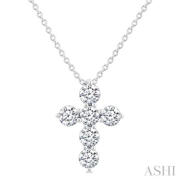 1/2 Ctw Round Cut Diamond Christian Cross 6-Stone Fashion Pendant With Chain in 14K White Gold Image 3 Adler's Diamonds Saint Louis, MO
