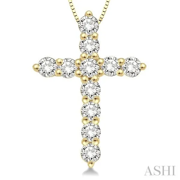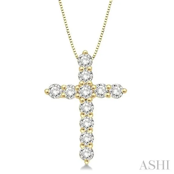 1/2 Ctw Round Cut Diamond Cross Pendant in 14K Yellow Gold with Chain Image 2 Adler's Diamonds Saint Louis, MO