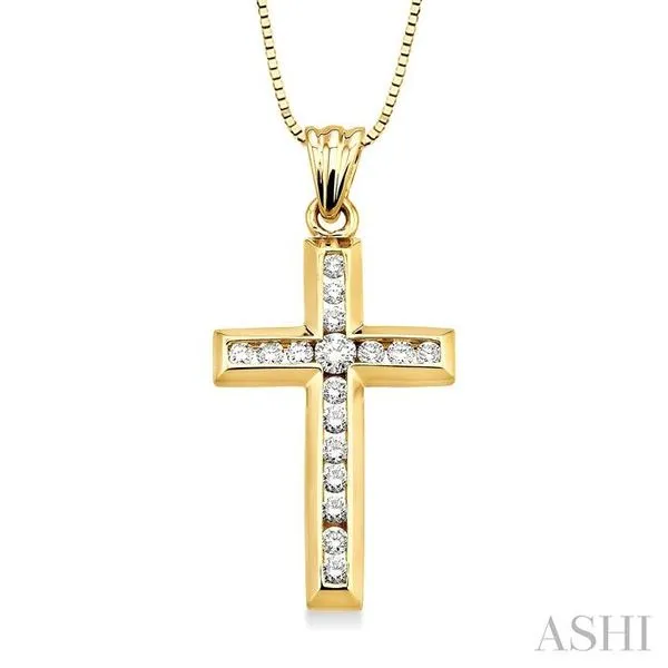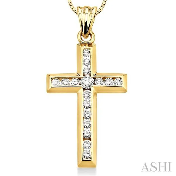 1/2 Ctw Round Cut Diamond Cross Pendant in 14K Yellow Gold with Chain Image 2 Adler's Diamonds Saint Louis, MO