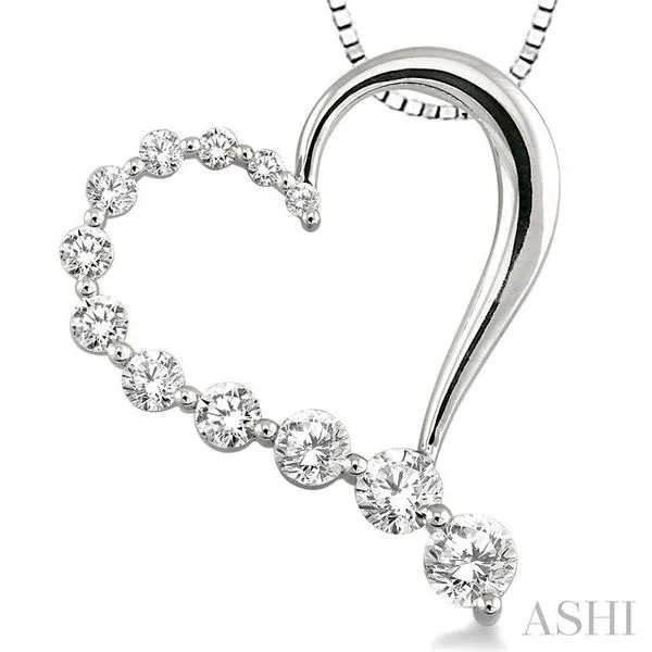 1/2 Ctw Round Cut Diamond Heart Half Journey Pendant in 14K White Gold with Chain Image 2 Adler's Diamonds Saint Louis, MO