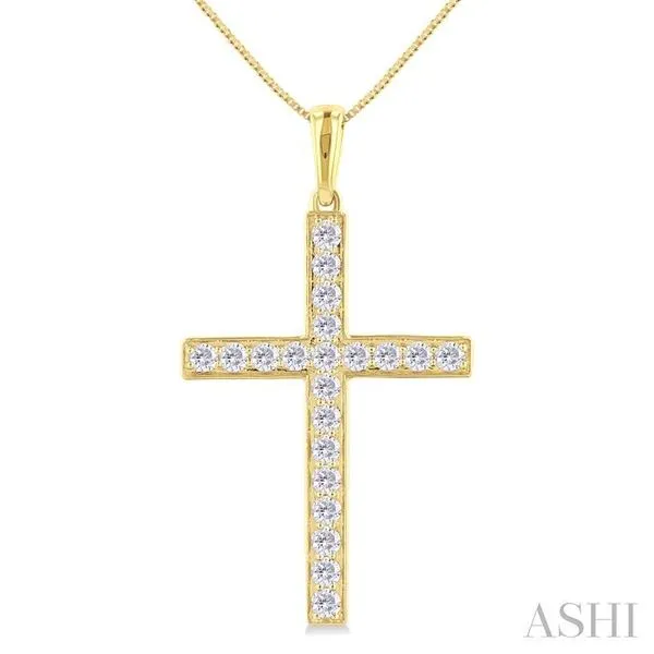 1/2 Ctw Round Cut Diamond Pave Set 1-Inch Plate Cross Pendant With Chain in 14K Yellow Gold Image 3 Adler's Diamonds Saint Louis, MO