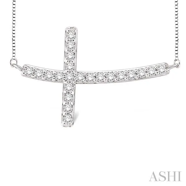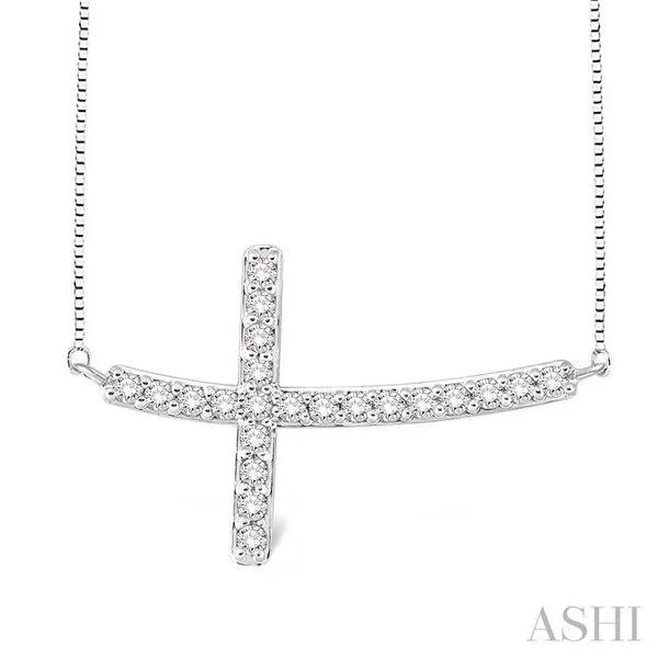 1/2 Ctw Round Cut Sideway Cross Pendant in 14K White Gold with Chain Image 2 Adler's Diamonds Saint Louis, MO