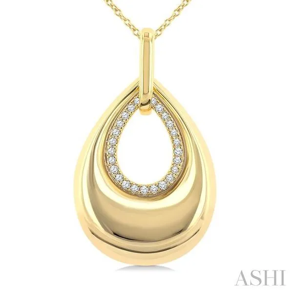 3. 1/20 Ctw Bold Open Window Teardrop Round Cut Diamond Fashion Pendant With Chain in 10K Yellow Gold