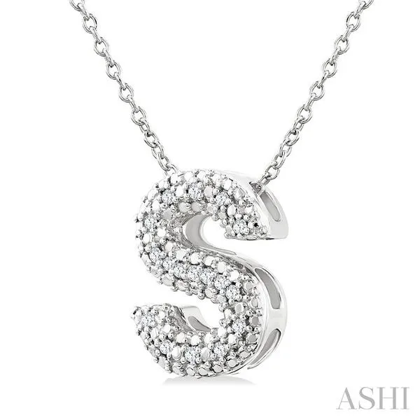 1/20 Ctw Bubble Accent Initial 'S' Round Cut Diamond Fashion Pendant With Chain in Sterling Silver Adler's Diamonds Saint Louis, MO