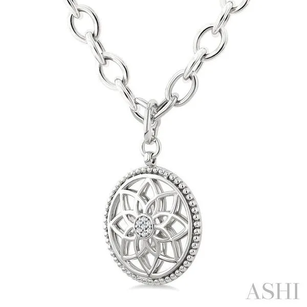 1/20 Ctw Circle medallion Round Cut Diamond Pendant With Chain in Sterling Silver Image 2 Adler's Diamonds Saint Louis, MO