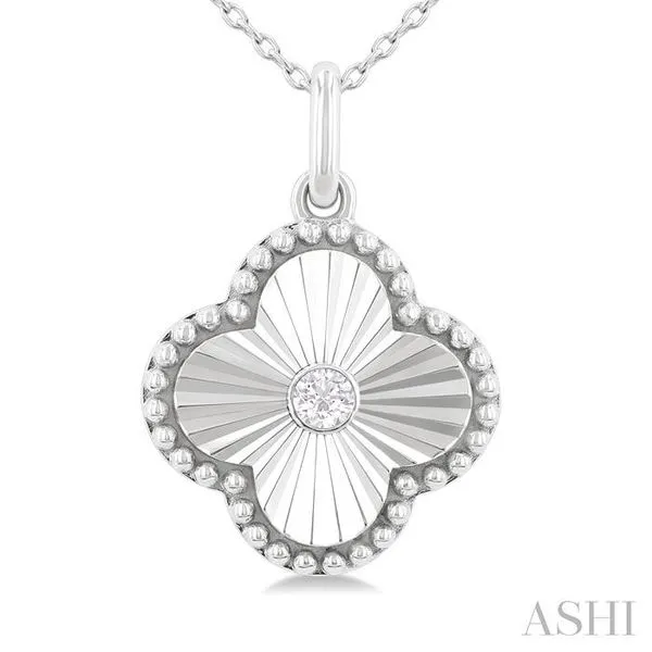 1/20 Ctw Clover Fluted Medallion Round Cut Diamond Pendant With Chain in Sterling Silver Image 2 Adler's Diamonds Saint Louis, MO