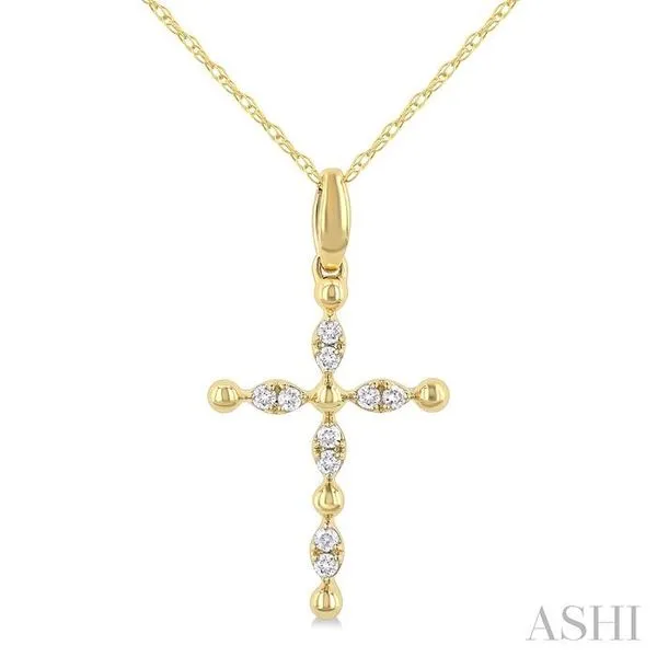 1/20 Ctw Cross Marquise and Ball Bead Motif Round Cut Diamond Fashion Pendant With Chain in 10K Yellow Gold Image 3 Adler's Diamonds Saint Louis, MO