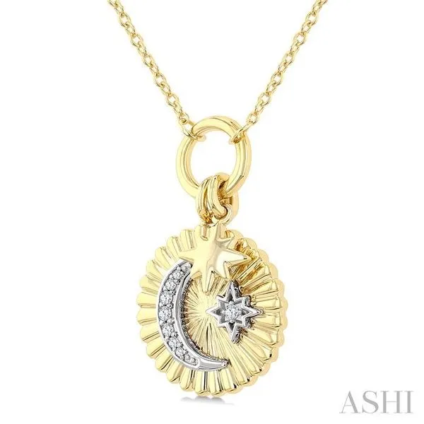 1/20 Ctw Fluted Medallion Crescent Moon & Star Charm Round Cut Diamond Fashion Pendant With Chain in 10K Yellow and White Gold Image 2 Adler's Diamonds Saint Louis, MO