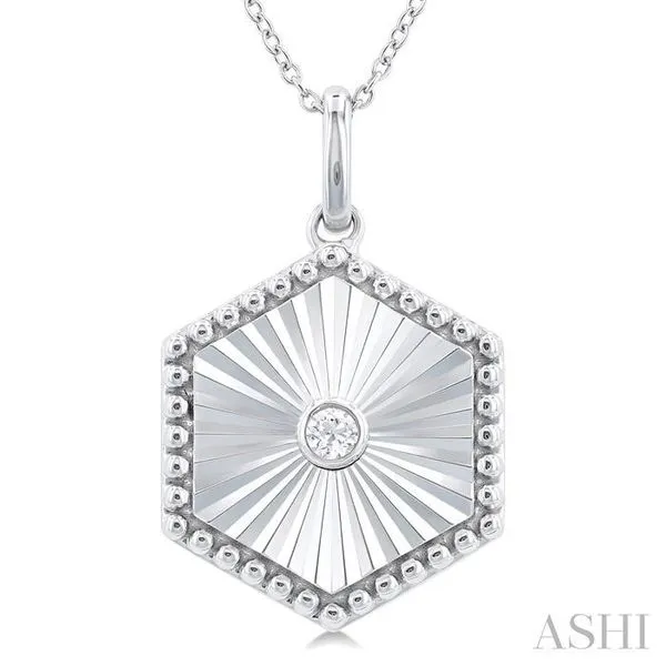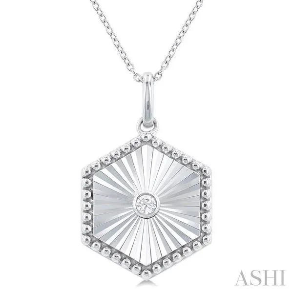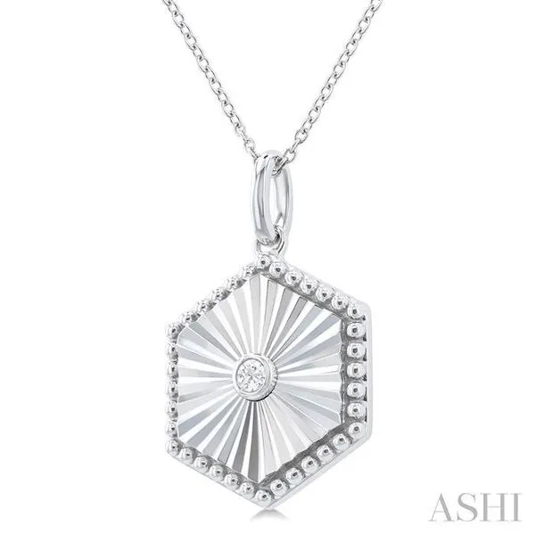 1/20 Ctw Hexagon fluted medallion Round Cut Diamond Pendant With Chain in Sterling Silver Image 2 Adler's Diamonds Saint Louis, MO