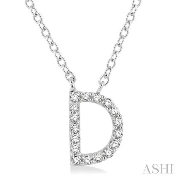 1/20 Ctw Initial 'D' Round Cut Diamond Pendant With Chain in 10K White Gold Image 2 Adler's Diamonds Saint Louis, MO