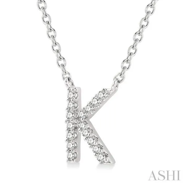 1/20 Ctw Initial 'K' Round Cut Diamond Pendant With Chain in 10K White Gold Image 2 Adler's Diamonds Saint Louis, MO