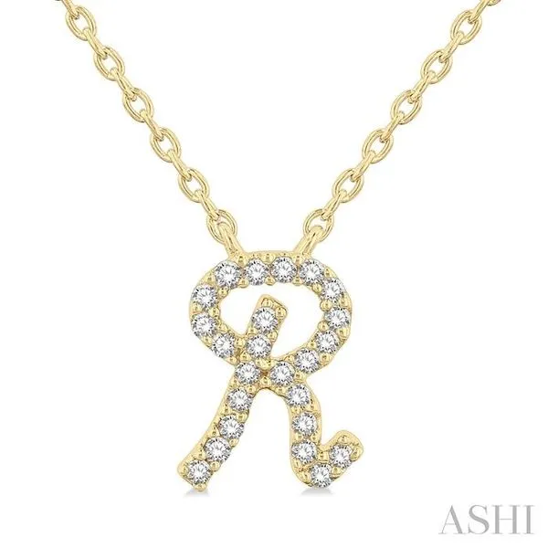1/20 Ctw Initial 'R' Round cut Diamond Pendant With Chain in 10K Yellow Gold Image 3 Adler's Diamonds Saint Louis, MO