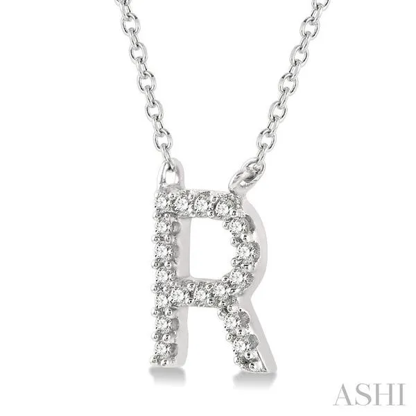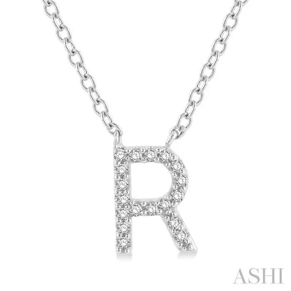 1/20 Ctw Initial 'R' Round Cut Diamond Pendant With Chain in 14K White Gold Image 2 Adler's Diamonds Saint Louis, MO
