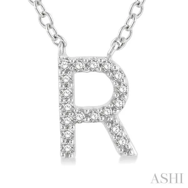 1/20 Ctw Initial 'R' Round Cut Diamond Pendant With Chain in 14K White Gold Image 4 Adler's Diamonds Saint Louis, MO