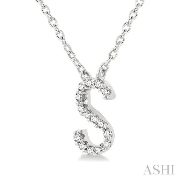 1/20 Ctw Initial 'S' Round Cut Diamond Pendant With Chain in 14K White Gold Image 2 Adler's Diamonds Saint Louis, MO
