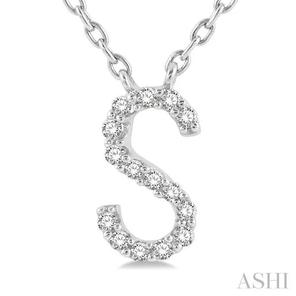 1/20 Ctw Initial 'S' Round Cut Diamond Pendant With Chain in 14K White Gold Image 4 Adler's Diamonds Saint Louis, MO