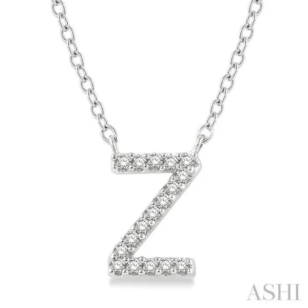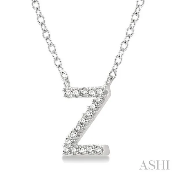 1/20 Ctw Initial 'Z' Round Cut Diamond Pendant With Chain in 14K White Gold Image 4 Adler's Diamonds Saint Louis, MO