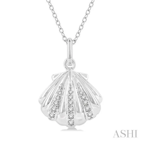 1/20 Ctw Marine Life Petite Seashell Round Cut Diamond Fashion Pendant With Chain in 10K White Gold Image 2 Adler's Diamonds Saint Louis, MO
