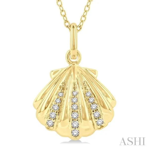 1/20 Ctw Marine Life Petite Seashell Round Cut Diamond Fashion Pendant With Chain in 10K Yellow Gold Image 2 Adler's Diamonds Saint Louis, MO