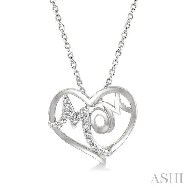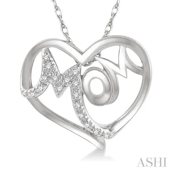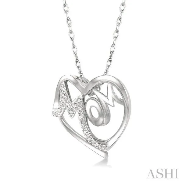 1/20 Ctw MOM Round Cut Diamond Heart Pendant With Chain in 10K White Gold Image 2 Adler's Diamonds Saint Louis, MO