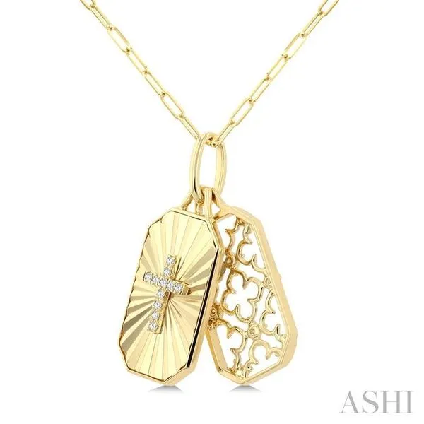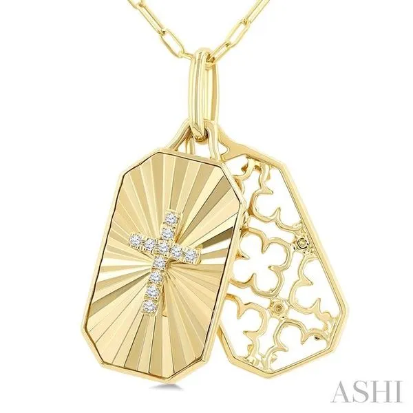 1/20 Ctw Octagonal Shape Fluted Cross & Lattice Medallion Round Cut Diamond Fashion Pendant With Chain in 10K Yellow Gold Image 2 Adler's Diamonds Saint Louis, MO