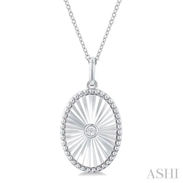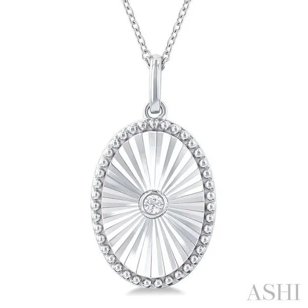 1/20 Ctw Oval fluted medallion Round Cut Diamond Pendant With Chain in Sterling Silver Image 2 Adler's Diamonds Saint Louis, MO