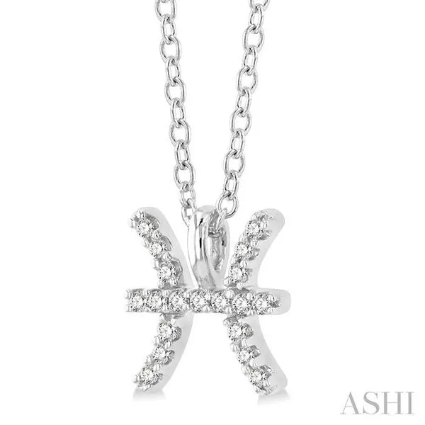 1/20 Ctw Pisces Round Cut Diamond Zodiac Pendant With Chain in 14K White Gold Image 3 Adler's Diamonds Saint Louis, MO