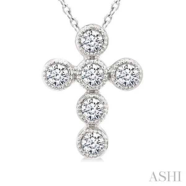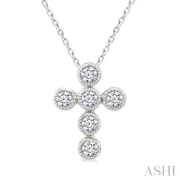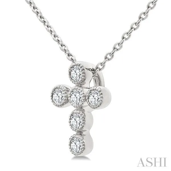 1/20 Ctw Round Cut Diamond Bezel Set Cross Petite Pendant With Chain in 10K White Gold Image 3 Adler's Diamonds Saint Louis, MO