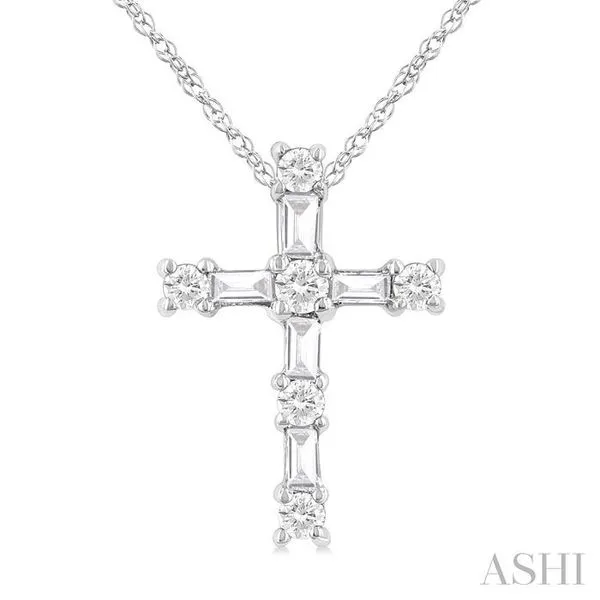 1/20 Ctw Round Cut Diamond Cross Pendant in 10K White Gold with Chain Image 2 Adler's Diamonds Saint Louis, MO