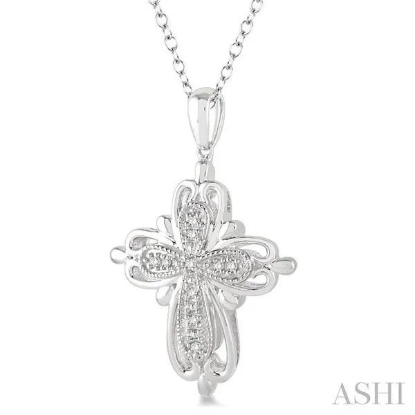 1/20 Ctw Round Cut Diamond Cross Pendant in Sterling Silver with Chain Image 3 Adler's Diamonds Saint Louis, MO