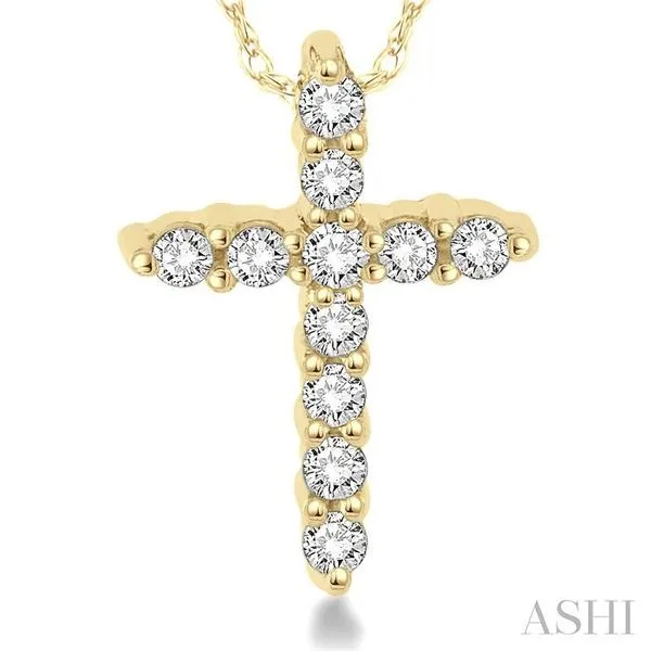1/20 Ctw Round Cut Diamond Cross Petite Pendant in 14K Yellow Gold with Chain Image 2 Adler's Diamonds Saint Louis, MO