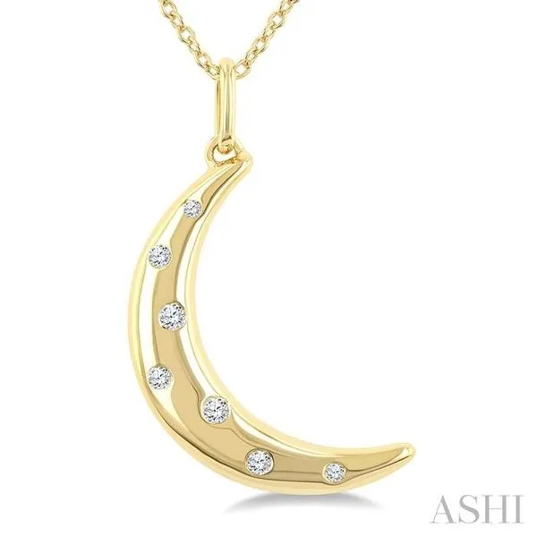 1/20 Ctw Round Cut Diamond Flush Set Moon Mosaic Pendant With Chain in 10K Yellow Gold Image 2 Adler's Diamonds Saint Louis, MO