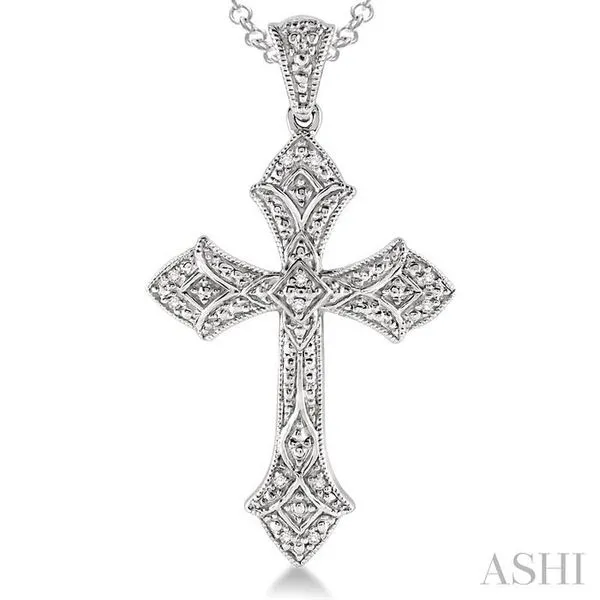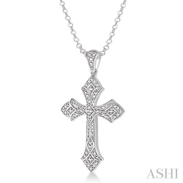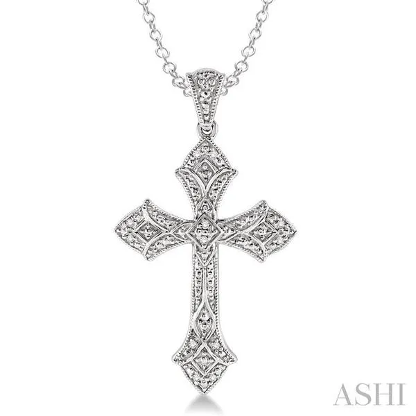 1/20 Ctw Single Cut Diamond Cross Pendant in Sterling Silver with Chain Image 2 Adler's Diamonds Saint Louis, MO