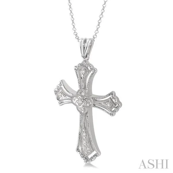 1/20 Ctw Single Cut Diamond Cross Pendant in Sterling Silver with Chain Image 2 Adler's Diamonds Saint Louis, MO