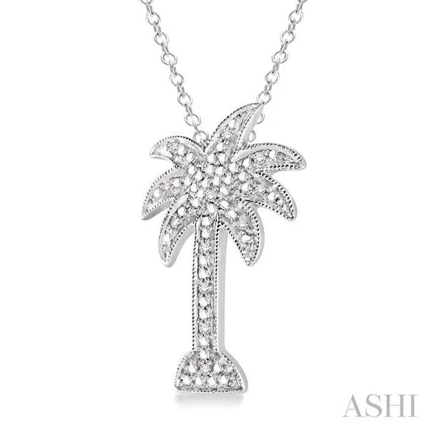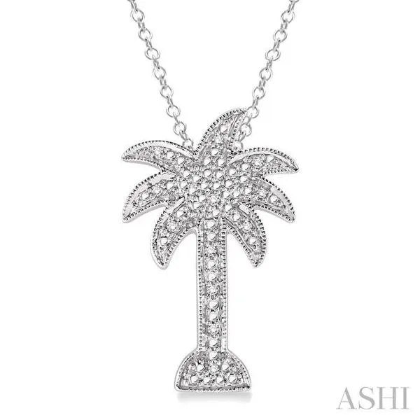 1/20 Ctw Single Cut Diamond Palm Tree Pendant in Sterling Silver with Chain Image 2 Adler's Diamonds Saint Louis, MO