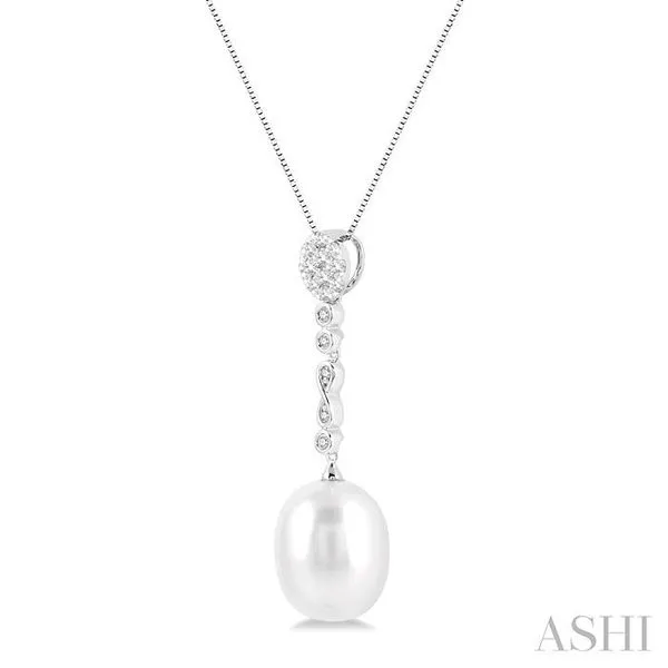 12x10 MM Cultured Pearl and 1/5 Ctw Hanging Round Cut Diamond Drop Lovebright Pendant With Chain in 14K White Gold Image 2 Adler's Diamonds Saint Louis, MO